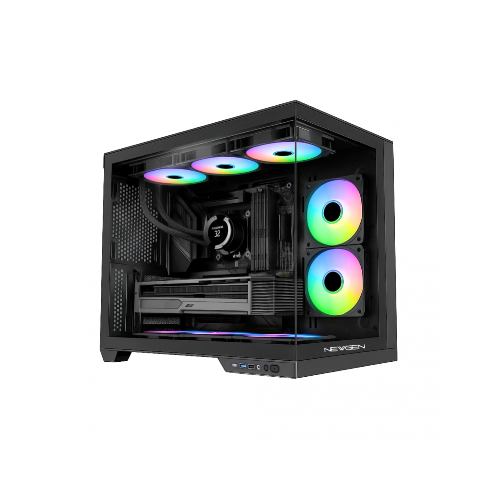 Gabinete marca NEWGEN modelo Palladium MESH EATX Incluye 4 ventiladores ARGB controlables por botón